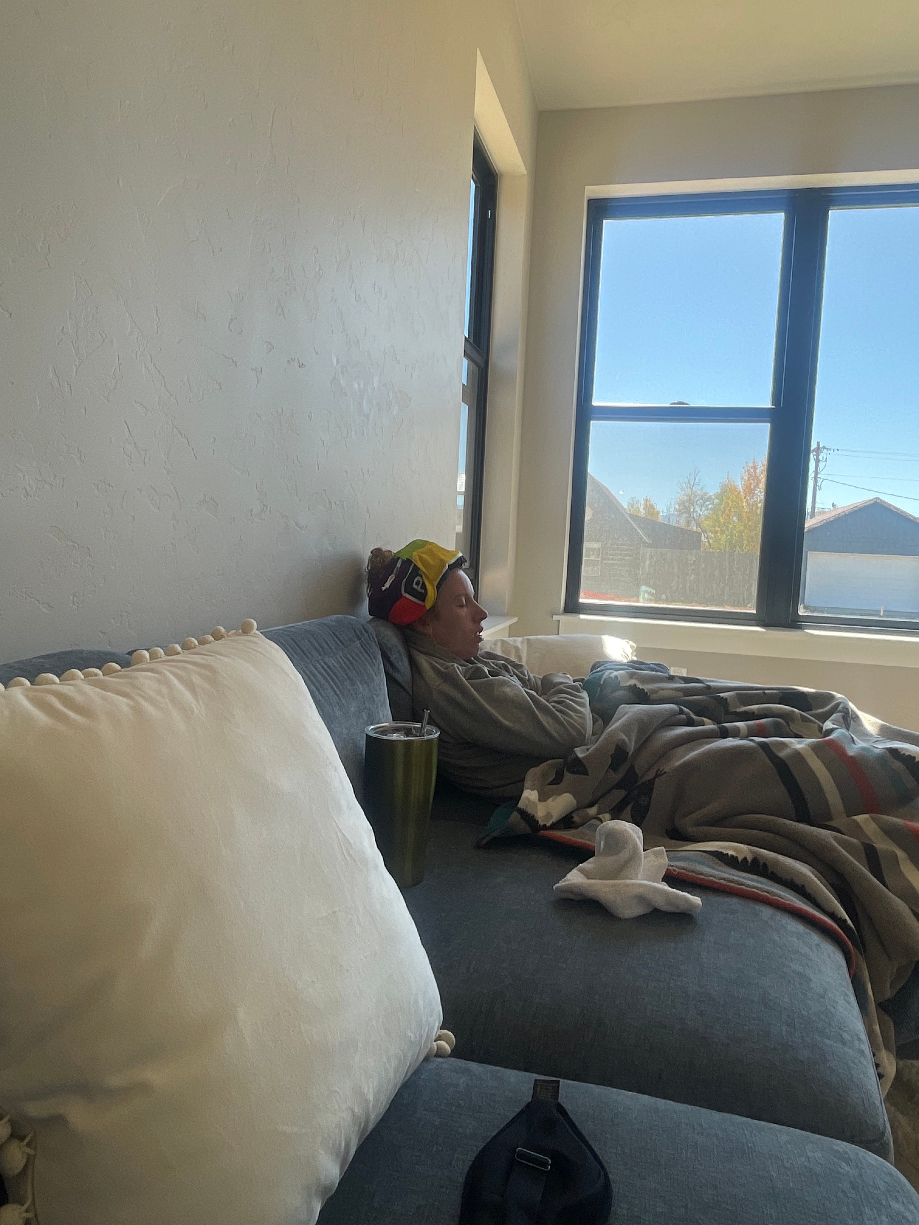 About eight days out, Eli started saying he felt “off.” Ten hours later, he was horizontal on the couch with a fever, chills, and a pounding headache. Tabor, in full nurse mode and armed with enough vitamins to start a pharmacy, thought she was in the clear, until Tuesday of race week, when she started to feel the same thing creeping in.